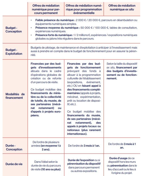 - Capacité de réalisation : au regard de la fréquence de l’évolution d’une programmation culturelle, la conception de dispositifs de médiation numérique serait souvent exposée à des difficultés de réalisation dans des délais courts ainsi qu’à des budgets et des moyens restreints.
